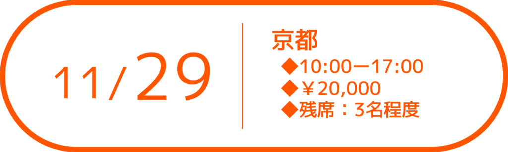 オープンキャンパスは京都での開催となりますが 近畿圏の方だけではなく、東京や沖縄、はたまたベルギーといった海外在住の方にもご参加いただいております。 ぜひ一度、私のアトリエまでお越しください! 【どうしても都合が合わない方へ】 参加してみたい!でも、どうしても都合が合わない・・・ 開催日程でお困りの際は、 個別セッション や教室見学会もございますので、お気軽にご相談ください。 ご相談はこちら